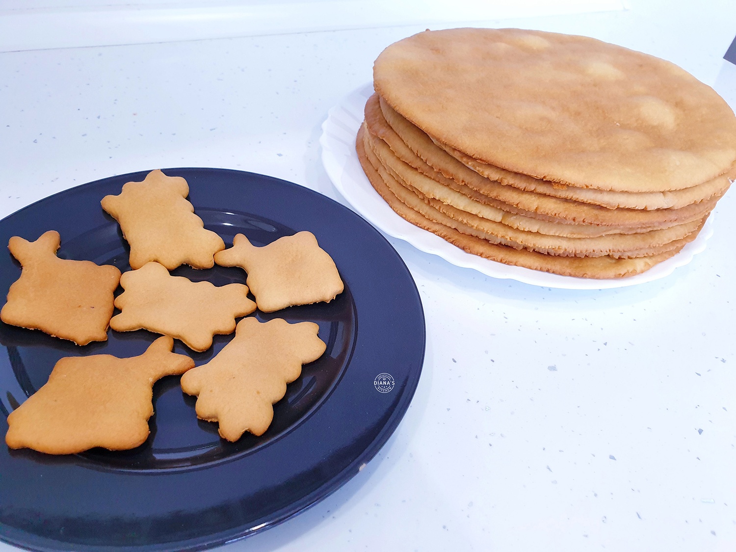 - Placile se coc la cuptorul preincalzit la 150°C timp de 5-7 minute, dar depinde mult si de cuptorul propriu. Se lasa sa se raceasca, apoi se ung cu crema. La asamblarea tortului am folosit doar 7 placi. O placa am maruntit-o impreuna cu nucile si am folosit-o ca decor in partile laterale ale tortului.